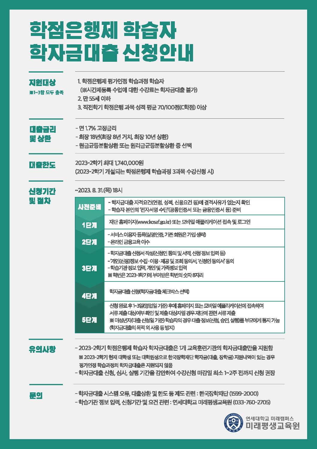 2023-2학기 학점은행 학습자 학자금대출 안내