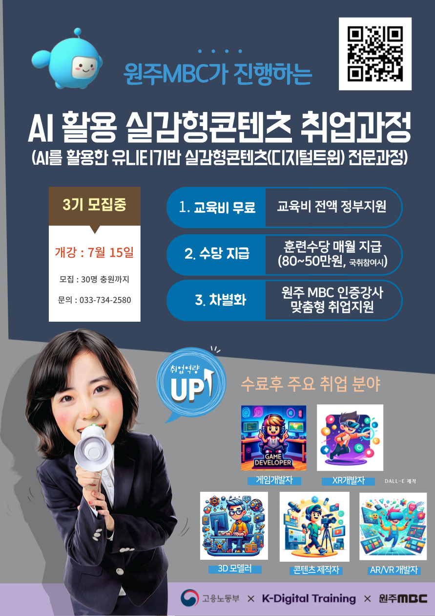 [원주MBC] AI활용 실감형 콘텐츠 취업과정 신청 안내