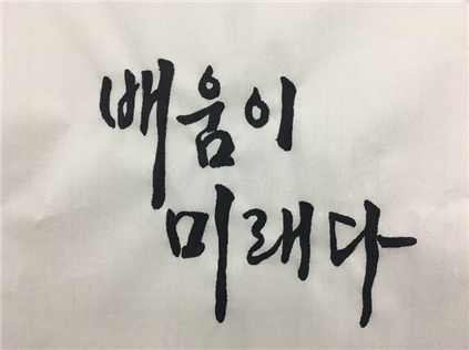 2018년 가을학기와 2019년 봄학기 두 학기동안 정주리 선생님의 '감성글씨 캘리그라피' 수업을 들었습니다. 평소 글씨를 예쁘게 쓰고 싶은 욕심이 있어서 수강신청 했는데.... 어렸을 때 배웠던 서예가 캘리를 배우는데 도움이 되지 못하고 오히려 방해가 되는 듯 했습니다. 손에 익은 정형적인 해서체 스타일을 지우려 애썼지만 1년 만에 사라지진 않더라구요. 오히려 글씨를 처음 쓰시는 분들이 선생님의 가르침을 빨리 습득하는 것 같아 부러웠습니다. 캘리 글씨는 새로운 감성을 입히는 과정인듯 합니다. 몇가지 초보적인 기본 원칙을 지키고 스킬을 습득하여 새롭게 변해가는 제 글씨를 볼 때 그 느낌은 참 말로 표현하지 못할 정도로 좋았습니다. 중급반이 개설되어 계속 글씨 쓰는 연습을 계속해 나가고 싶어요. 캘리그라피를 계속 배우고 연습할 수 있도록 중급반도 개설해 주셨으면 합니다. 감사합니다. |